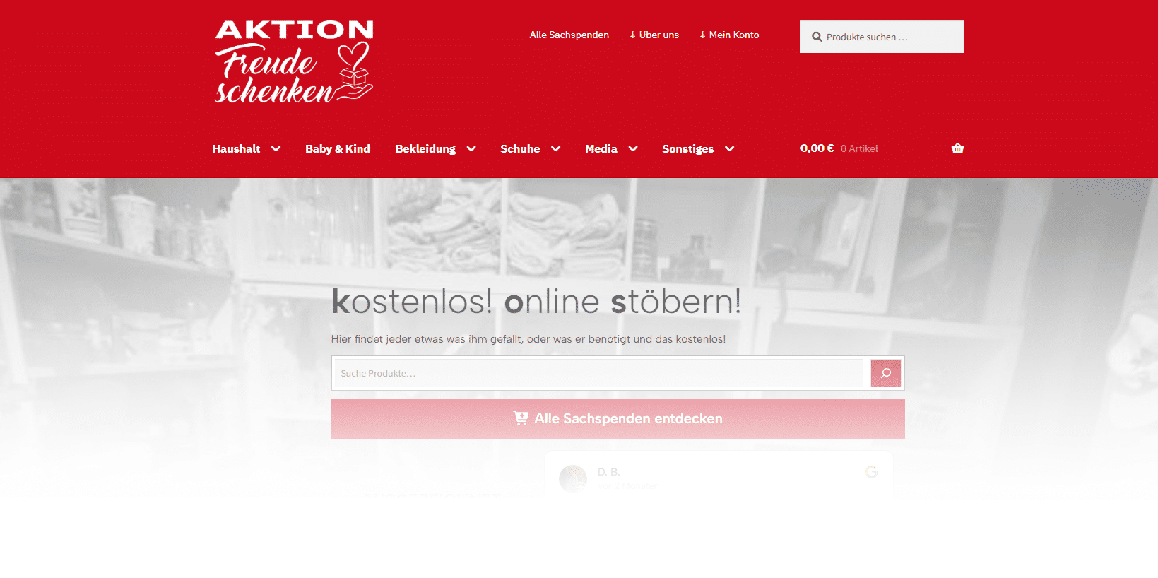 Herzlich Willkommen im Stöber Shop der AKTION: Freude schenken, Jennifer Berg. In diesem Stöber Online Shop kannst du kostenlos Sachspenden reservieren und diese vor Ort in Netphen-Hainchen abholen.